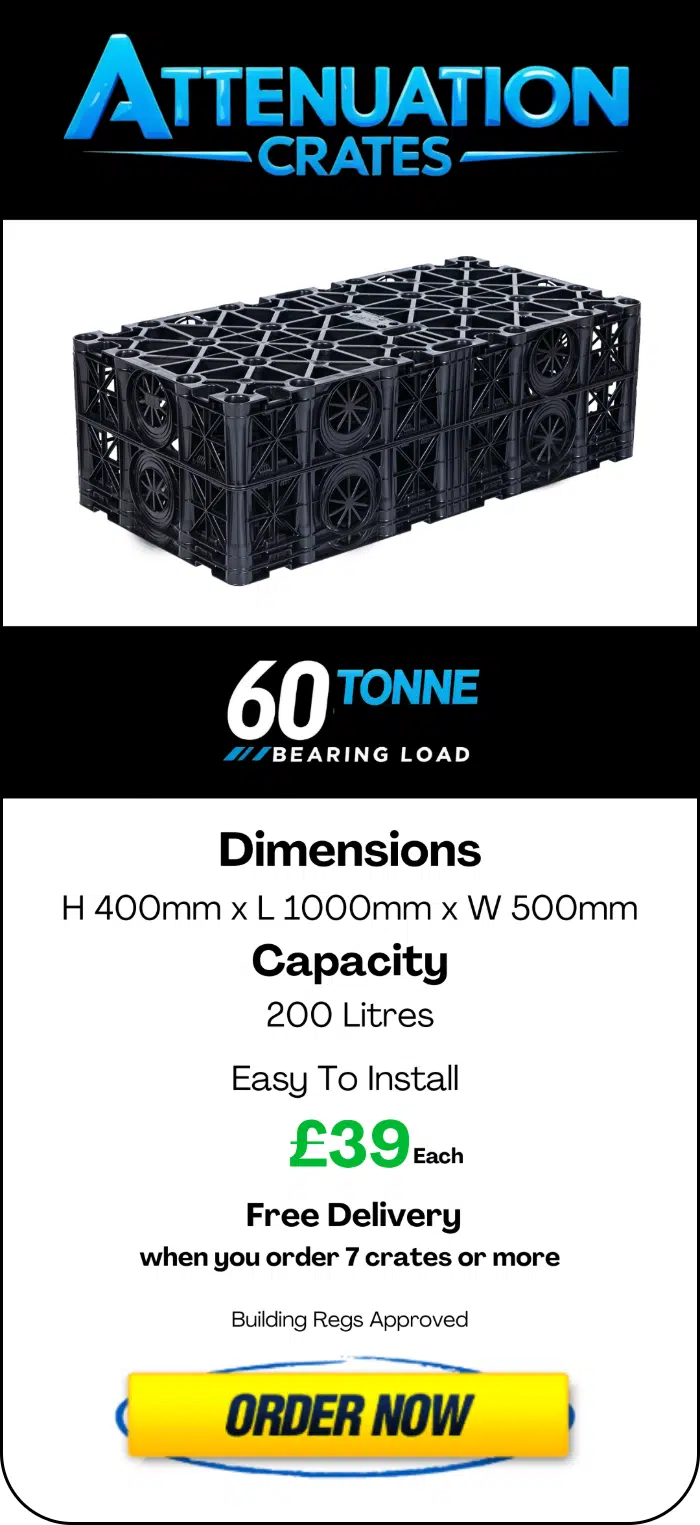 - Cost Efficiency: Attenuation crates offer significant savings—up to £40,000—compared to traditional drainage, making them attractive for developers (GRAF).